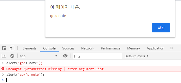 # escape(원래 임무로부터 탈출시킴) : 문자를 따옴표가 들어가게 표현하고 싶을때 \(역슬래쉬)하고 사용한다.