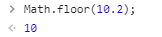 Math.floor(10.2); : 가장가까운 정수로 반내림 = 10