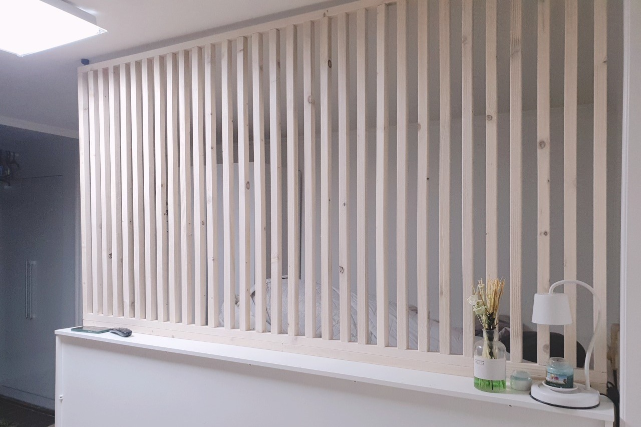침대 위치를 바꾸고 그 공간을 뭔가 갇힌거 같은(갇힌거 좋아 하악) 공간으로 만들기 위한 가벽세우기