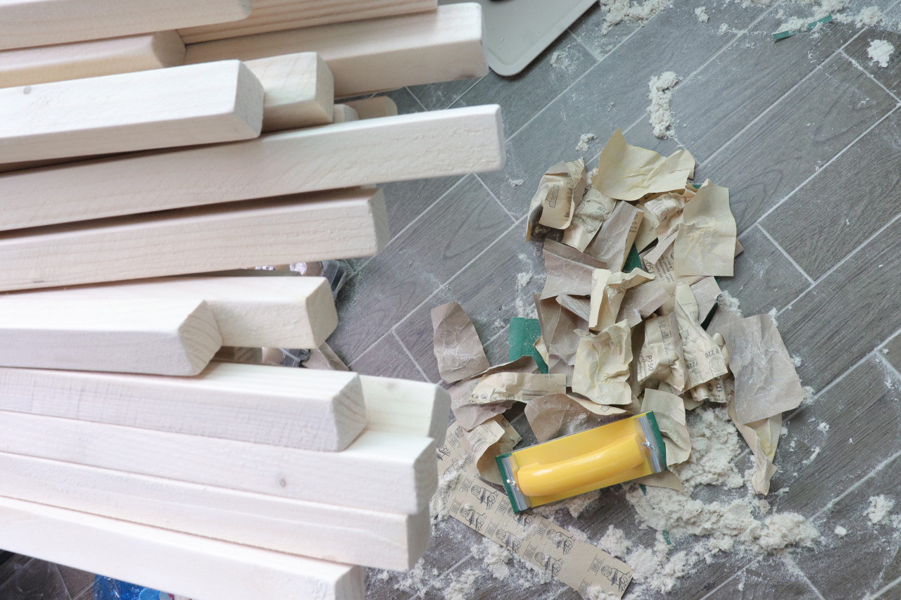 침대며 거실이며 나무가루 눈이 내리는 걸 보고 싶지 않았기에 묵묵히 베란다로 사포수행하러 들어감(비극의 시작)